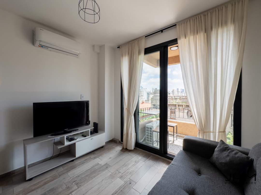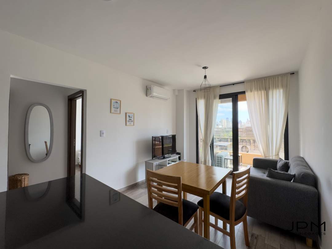 Excelente departamento para 2 personas cómodas! Living comedor equipado con smart tv y sillón de dos cuerpos. 2 Aires acondicionado frio- calor, y cocina integrada con gran barra, totalmente equipada con utensillos y elementos de cocina.
