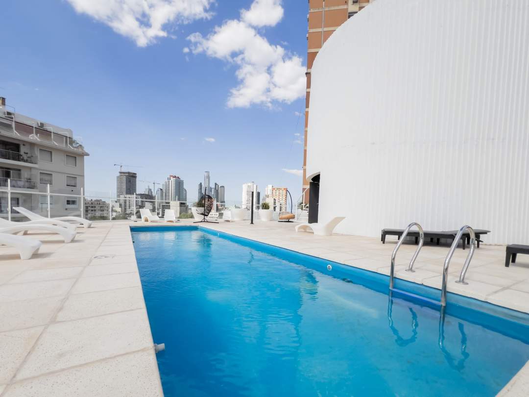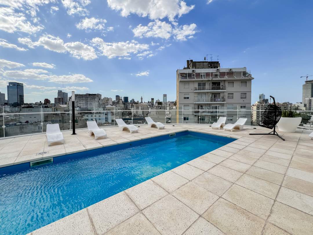 2 ambientes al frente con balcon con AMENITIES (Piscina, Gym, etc)