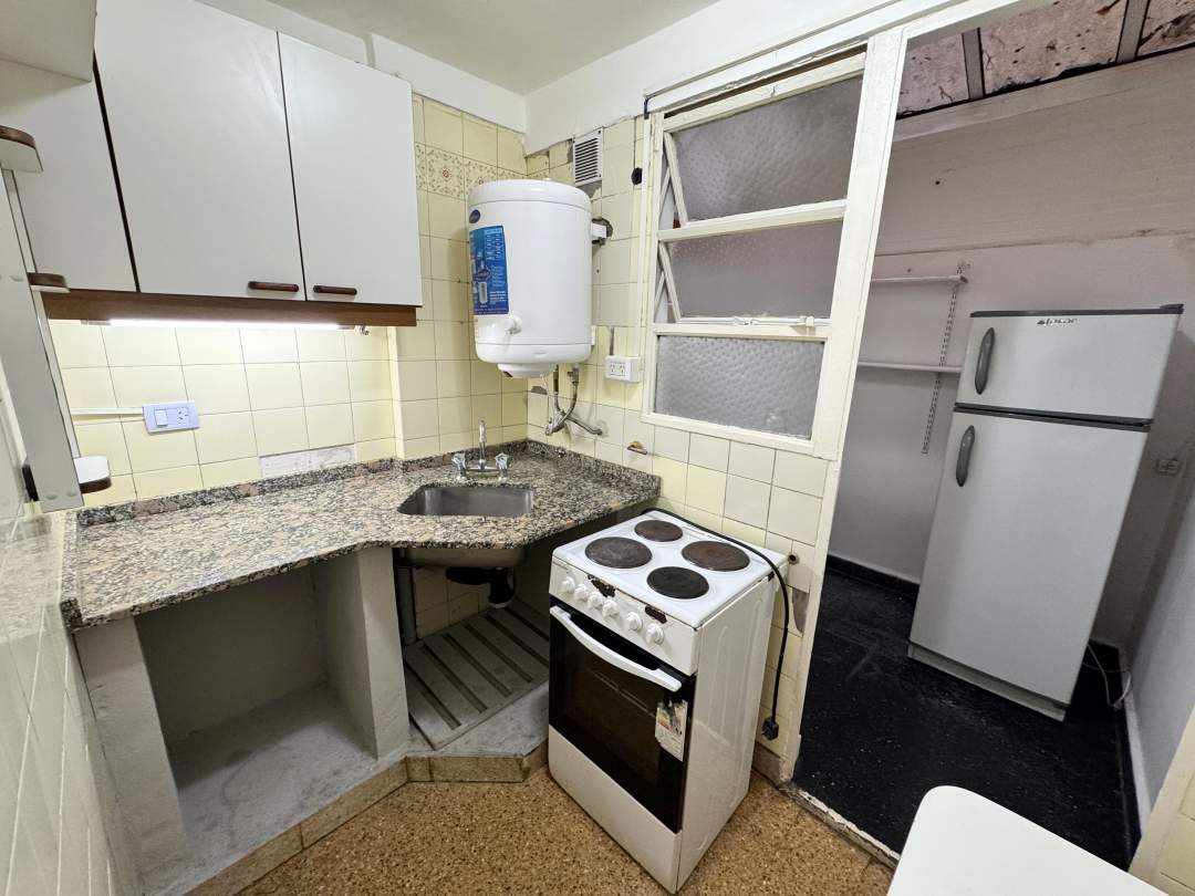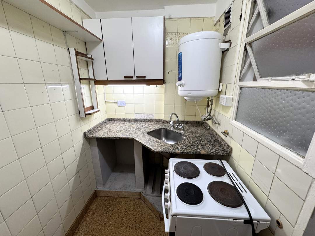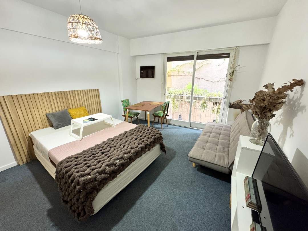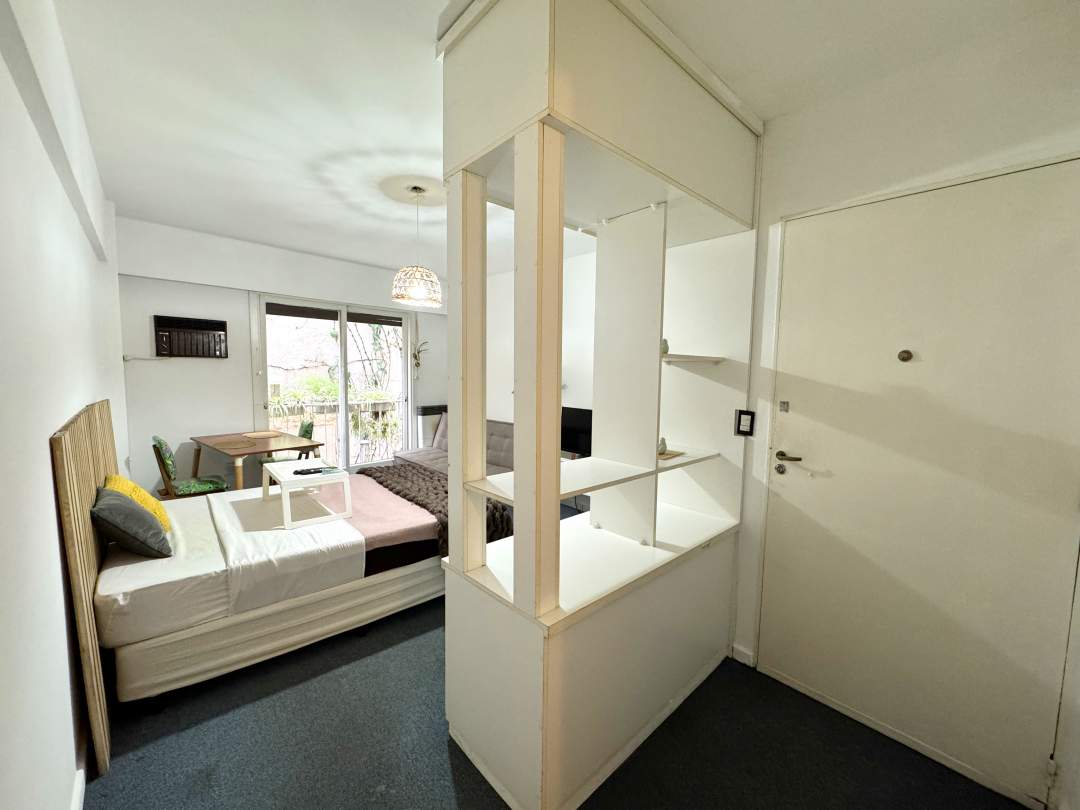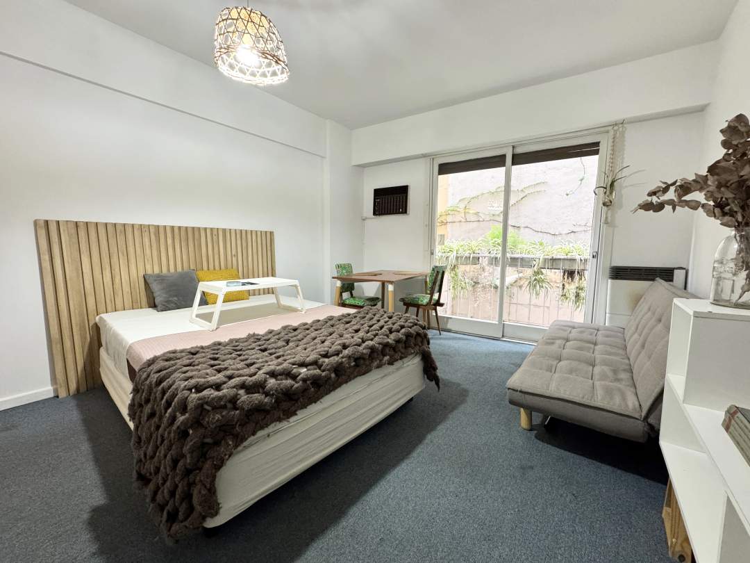Excelente monoambiente al contrafrente con balcón Francés con Patio con techo rebatible y lavadero incorporado.