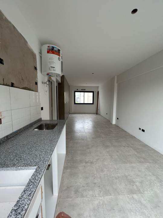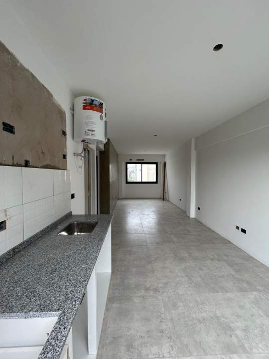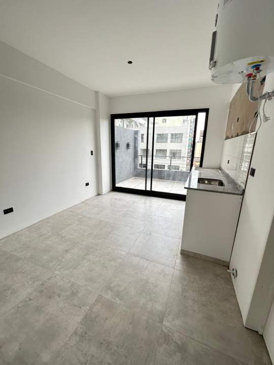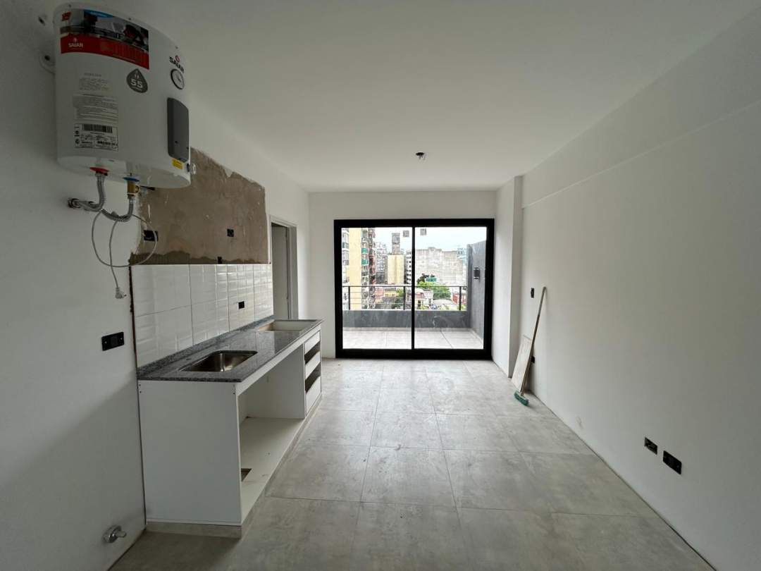 Distribución: El departamento cuenta con un gran ambiente orientación frente, con salida a un gran balcón aterrazado .. Cocina semi-integrada con conexión y espacio para lavarropas. Baño completo.